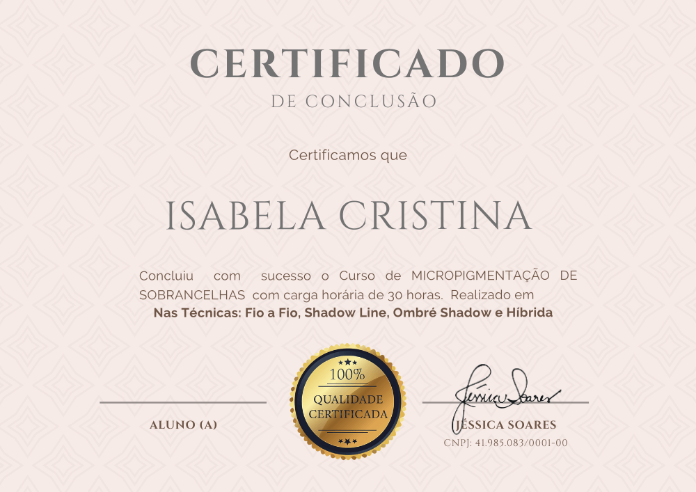Após concluir o Curso Micropigmentação Perfeitas, você terá acesso a um lindo certificado de conclusão que você poderá emitir direto da sua área do aluno.
